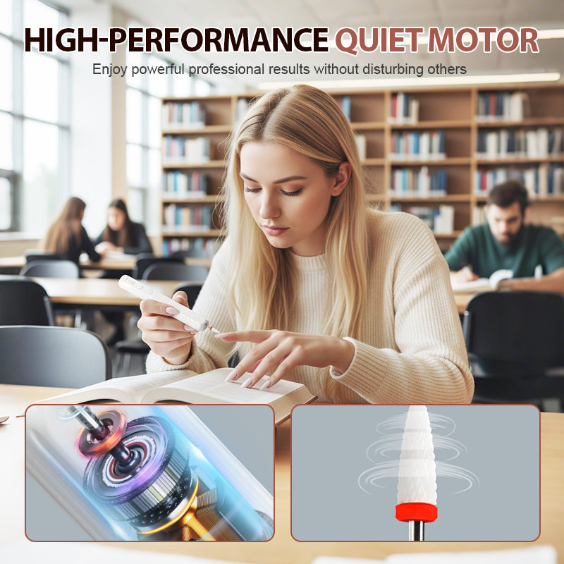 HIGH-PERFORMANCE QUIET MOTOR - Enjoy powerful professional results without disturbing others through advanced noise reduction technology. The precision-engineered motor delivers consistent high torque performance while maintaining operation, ensuring efficient filing and polishing without the noisy disruption of conventional nail drills.