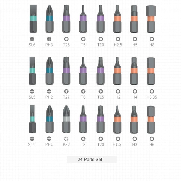 👉 24 embouts de tournevis en acier allié au chrome-molybdène S2 de qualité industrielle, traitement thermique continu. 5 types de têtes de tournevis, pour répondre aux besoins de l'utilisation professionnelle, de la vie domestique, du travail, du bricolage et de la maintenance. Conception à cliquet à 6,2 degrés, structure à cliquet à rotation positive et négative à 58 dents, permettant d'économiser 80 % d'efforts.👨🔧